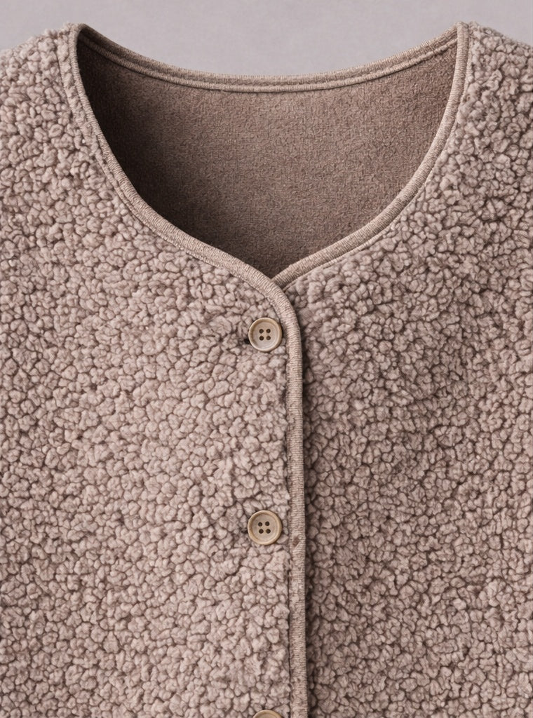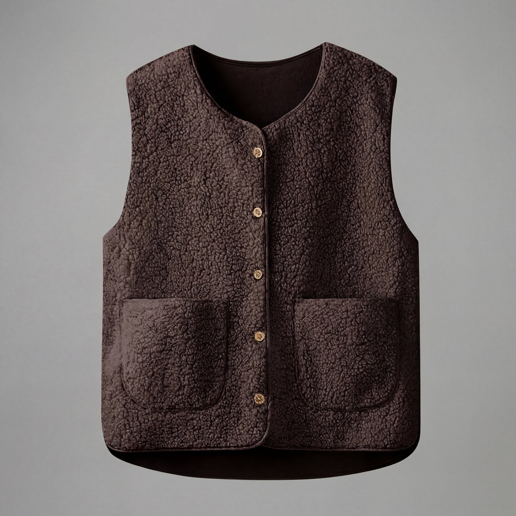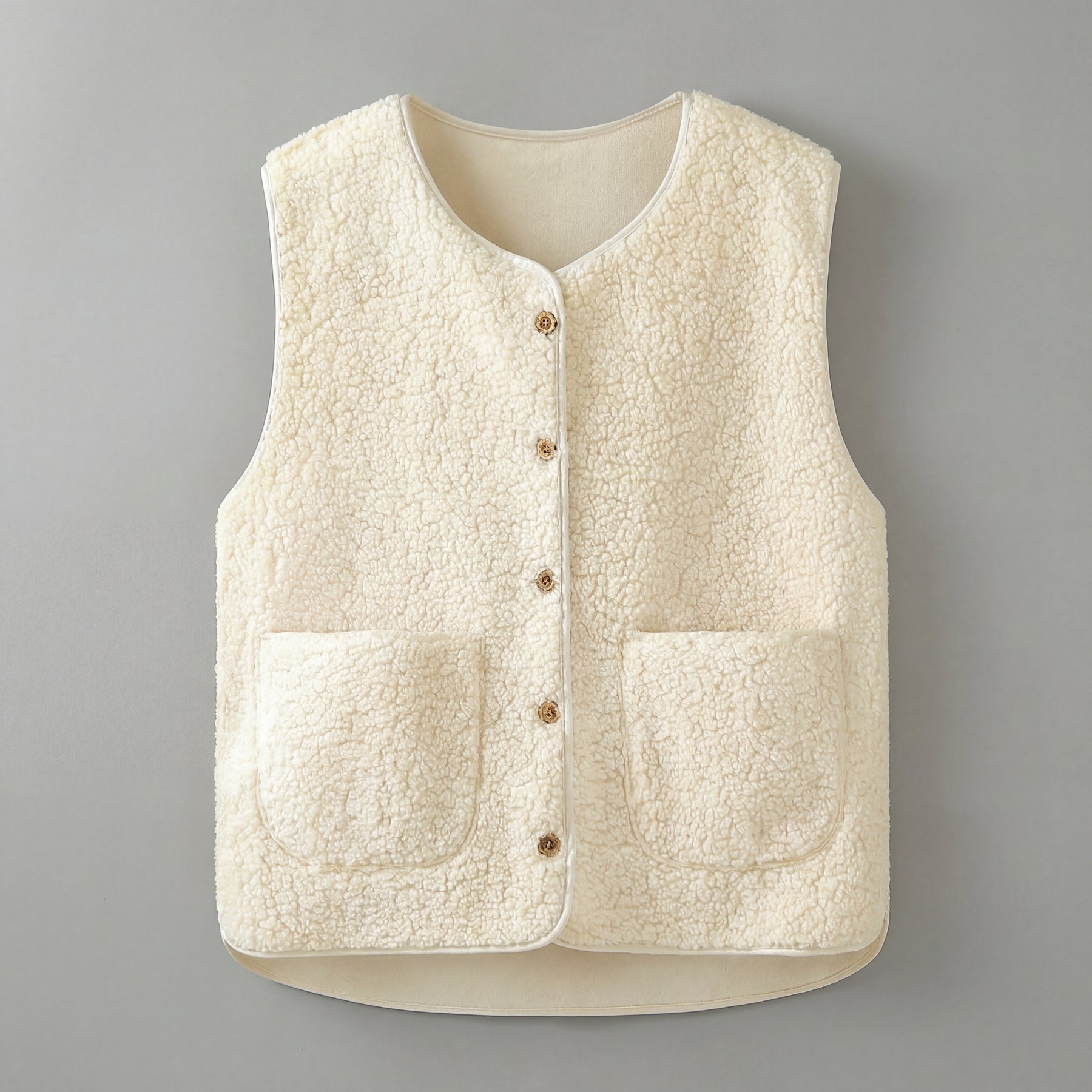 The Fleece Vest is designed for effortless layering and everyday comfort. Featuring a clean V-neckline and a single-row button closure, this piece offers a timeless casual look that pairs easily with shirts, blouses, or lightweight knits.