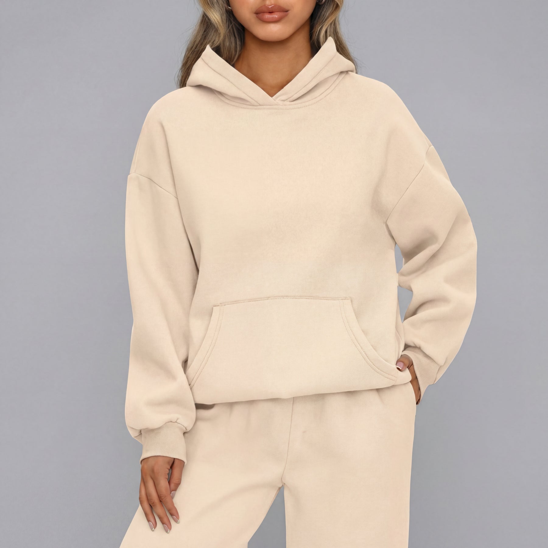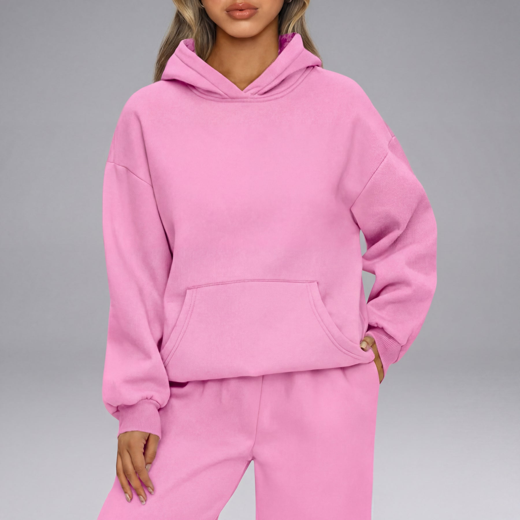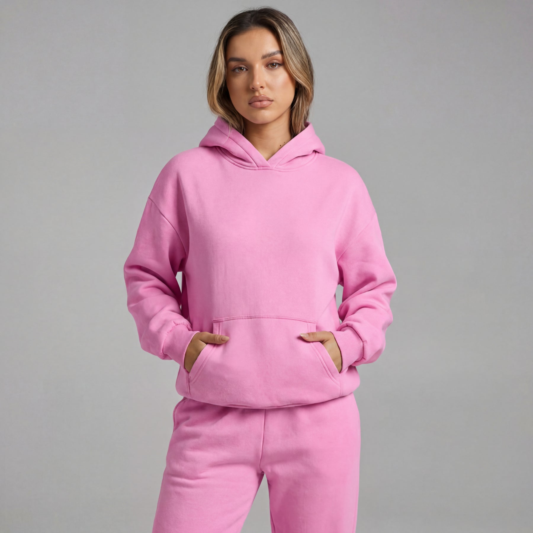 This hoodie features a modern relaxed silhouette with drop-shoulder sleeves for a contemporary, effortless look. The clean solid-colour design makes it easy to style with matching joggers or your everyday essentials. Designed with a loose fit for a laid-back yet refined appearance, it blends minimalism with comfort.