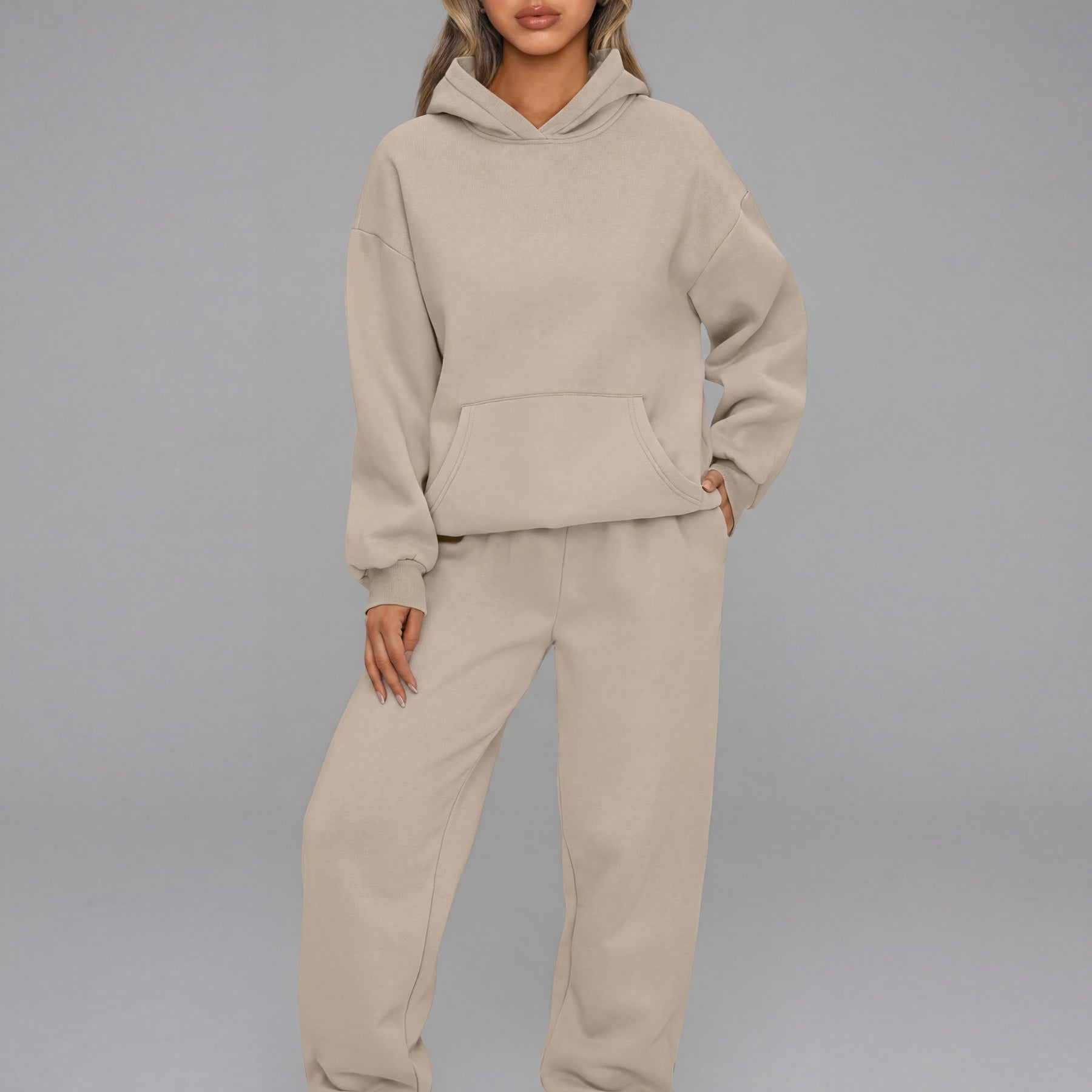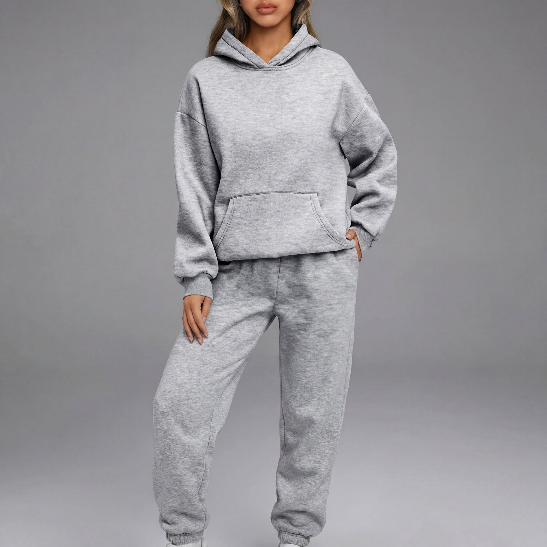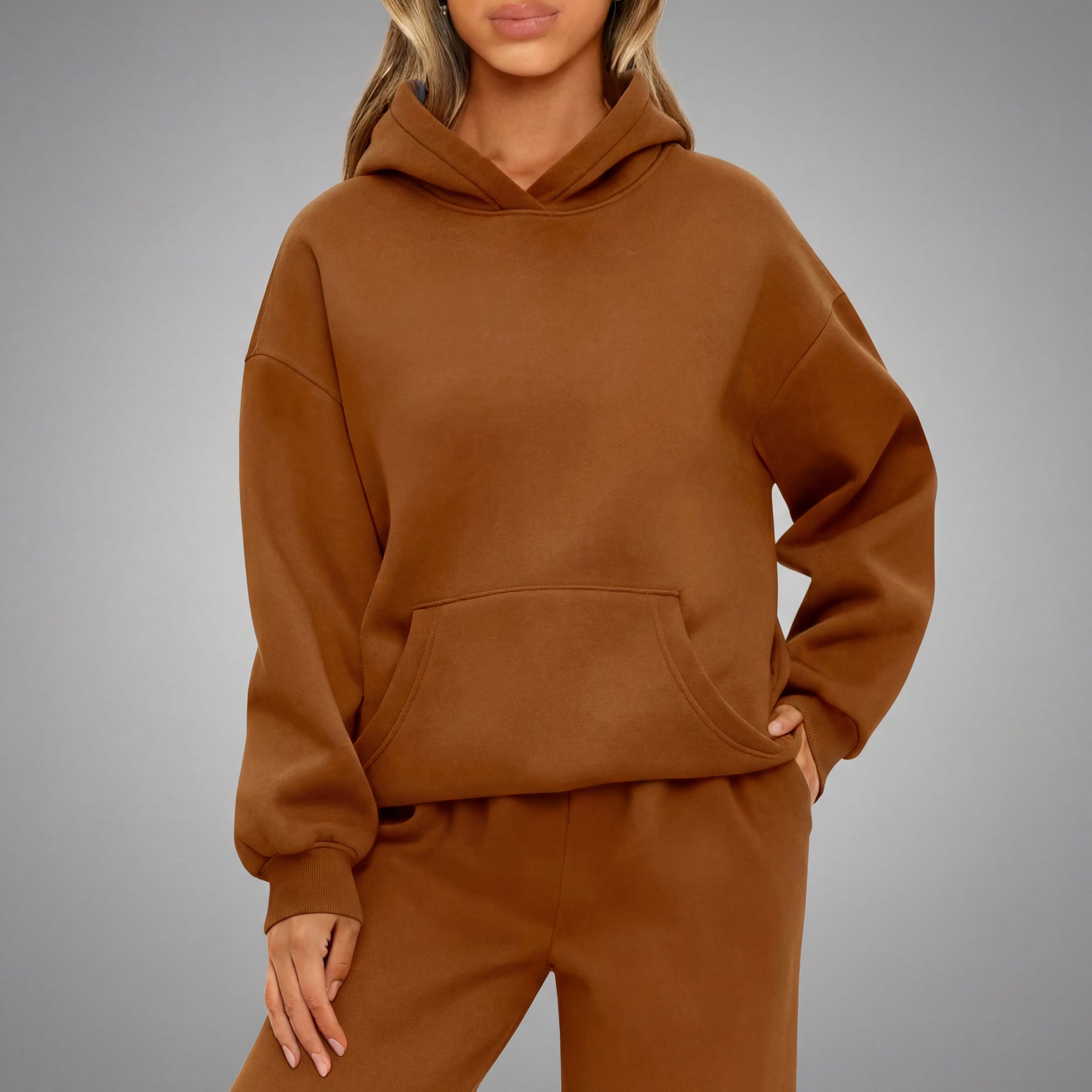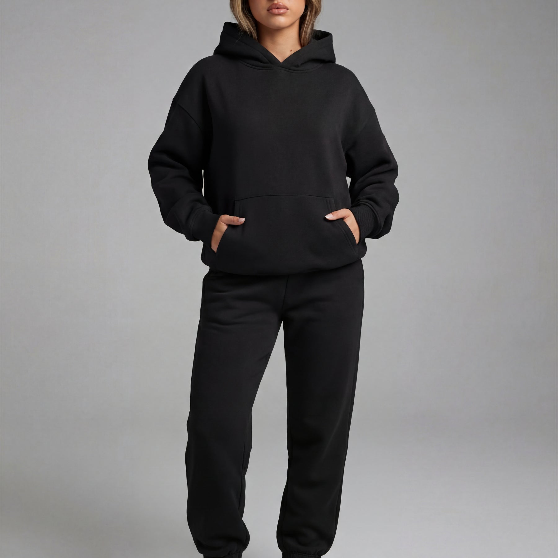 This hoodie features a modern relaxed silhouette with drop-shoulder sleeves for a contemporary, effortless look. The clean solid-colour design makes it easy to style with matching joggers or your everyday essentials. Designed with a loose fit for a laid-back yet refined appearance, it blends minimalism with comfort.