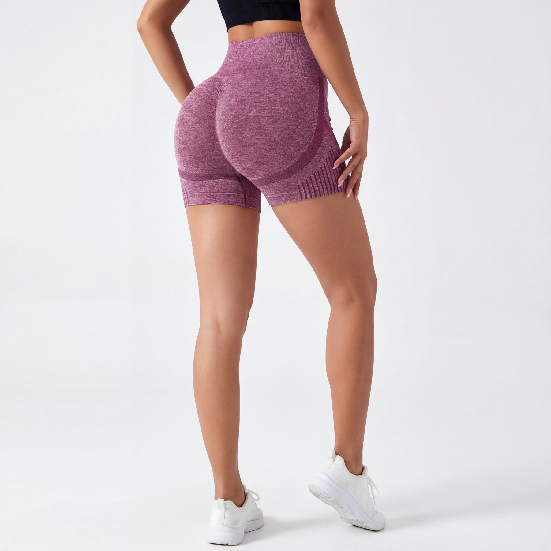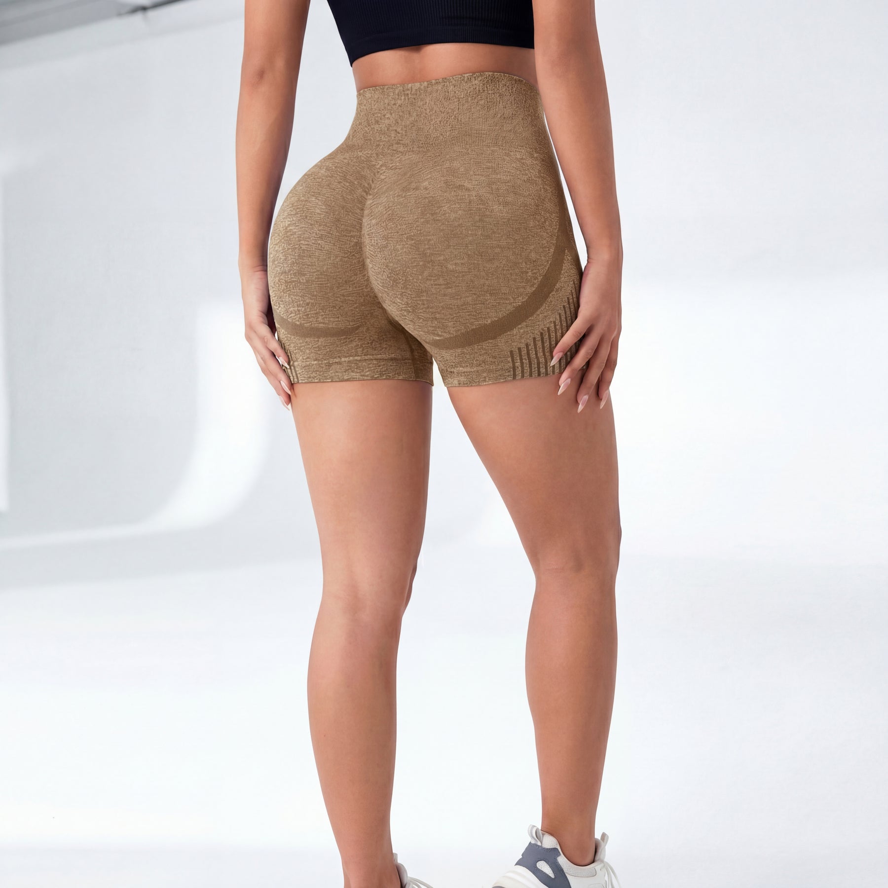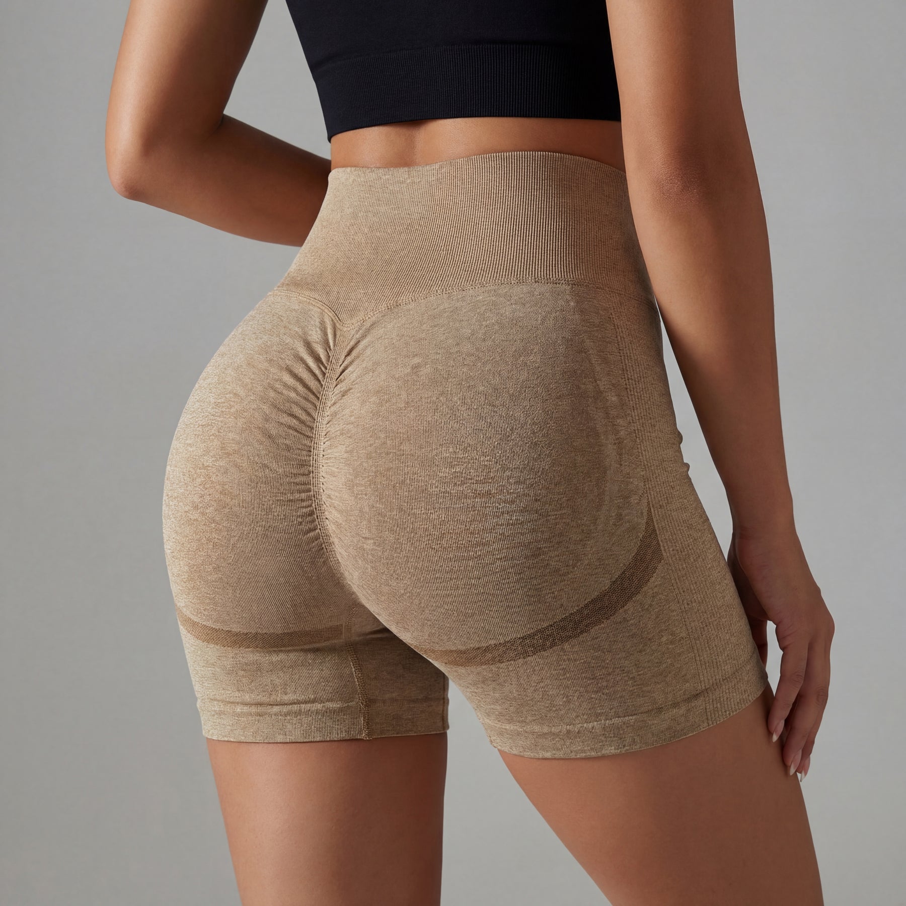These seamless shorts feature a high-waisted compressive waistband that enhances shape definition while offering a secure and supportive fit. The contour-knit structure subtly lifts and sculpts, creating a streamlined and confident appearance.