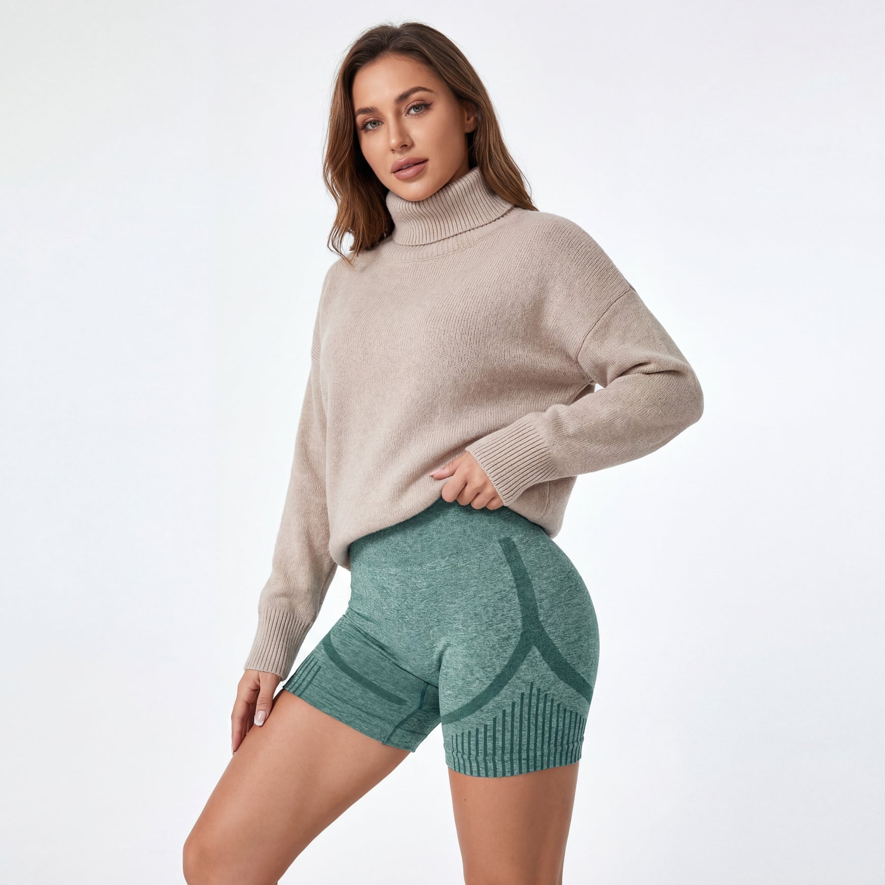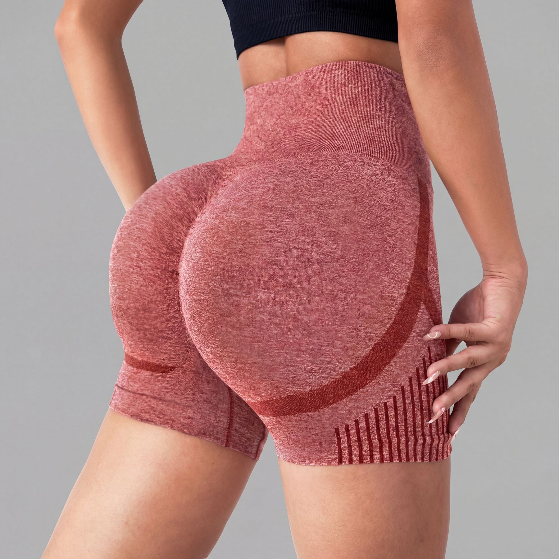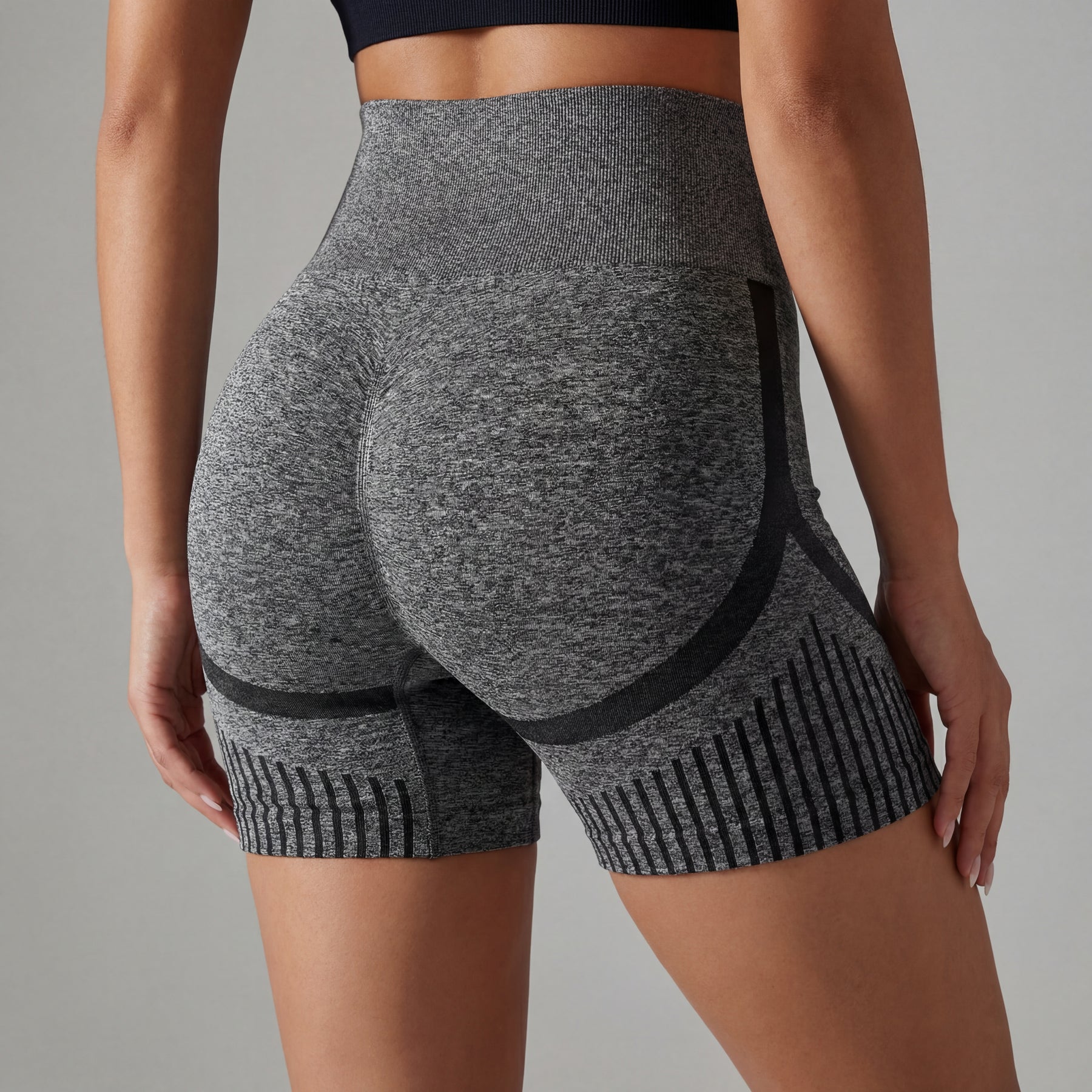 These seamless shorts feature a high-waisted compressive waistband that enhances shape definition while offering a secure and supportive fit. The contour-knit structure subtly lifts and sculpts, creating a streamlined and confident appearance.